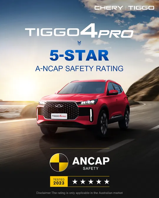 În data de 24 februarie, Chery TIGGO 4 PRO (versiunea australiană) a obținut un punctaj de cinci stele pentru siguranță la testele riguroase ale Australasian New Car Assessment Program (ANCAP), demonstrând performanța sa excepțională în materie de siguranță.